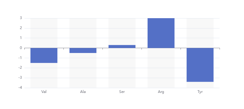 四、多肽Val-Ala-Ser-Pro-Arg-Tyr的亲疏水比例统计(条形图)