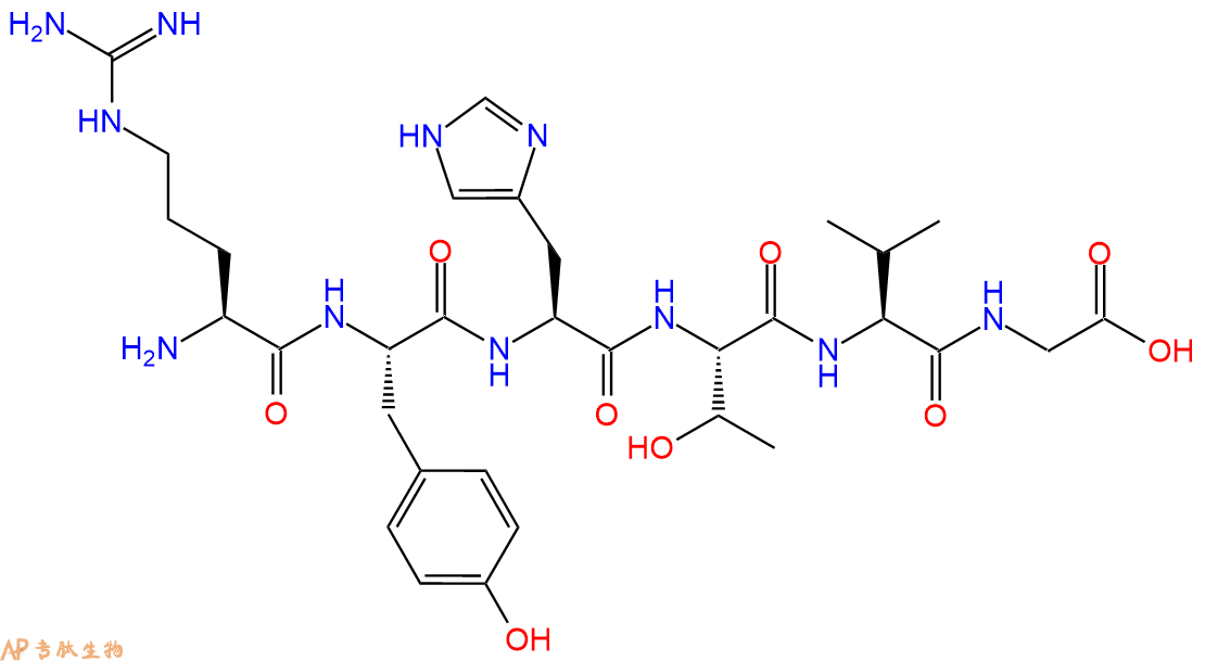 中文序列:精氨酸-酪氨酸-组氨酸-苏氨酸-缬氨酸-甘氨酸