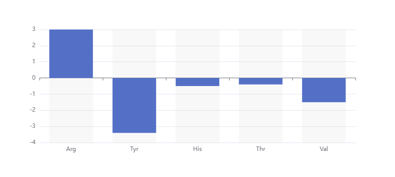 四、多肽Arg-Tyr-His-Thr-Val-Gly的亲疏水比例统计(条形图)