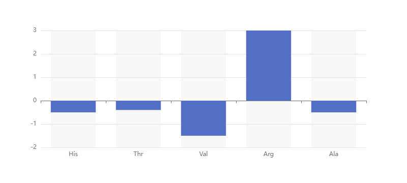 四、多肽His-Thr-Val-Gly-Arg-Ala的亲疏水比例统计(条形图)