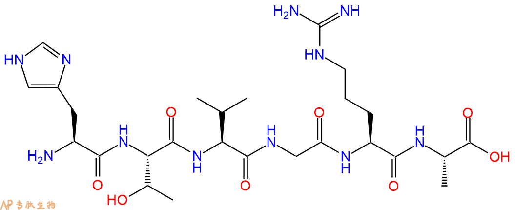 中文序列:组氨酸-苏氨酸-缬氨酸-甘氨酸-精氨酸-丙氨酸