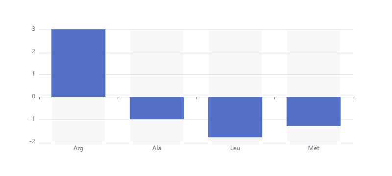 四、多肽Arg-Ala-Ala-Gly-Leu-Met的亲疏水比例统计(条形图)