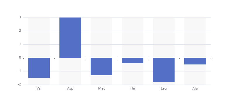四、多肽Val-Asp-Met-Thr-Leu-Ala的亲疏水比例统计(条形图)