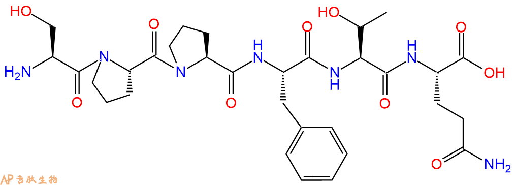三字母:H2N-Ser-Pro-Pro-Phe-Thr-Gln-COOH