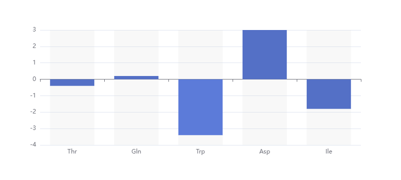 四、多肽Thr-Gln-Trp-Gly-Asp-Ile的亲疏水比例统计(条形图)