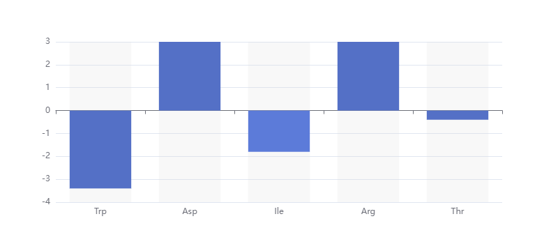 四、多肽Trp-Gly-Asp-Ile-Arg-Thr的亲疏水比例统计(条形图)
