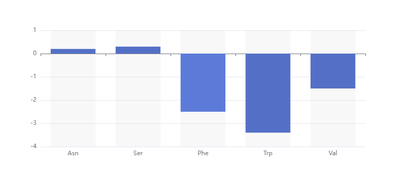 四、多肽Asn-Ser-Phe-Trp-Val的亲疏水比例统计(条形图)