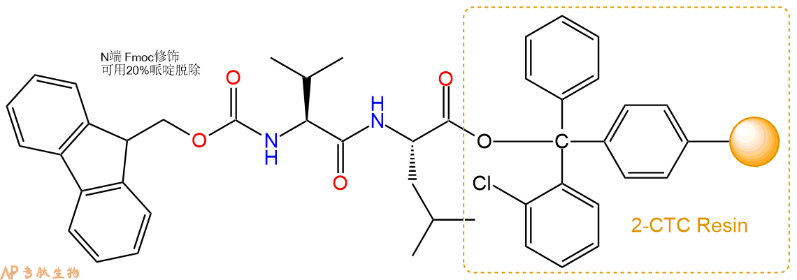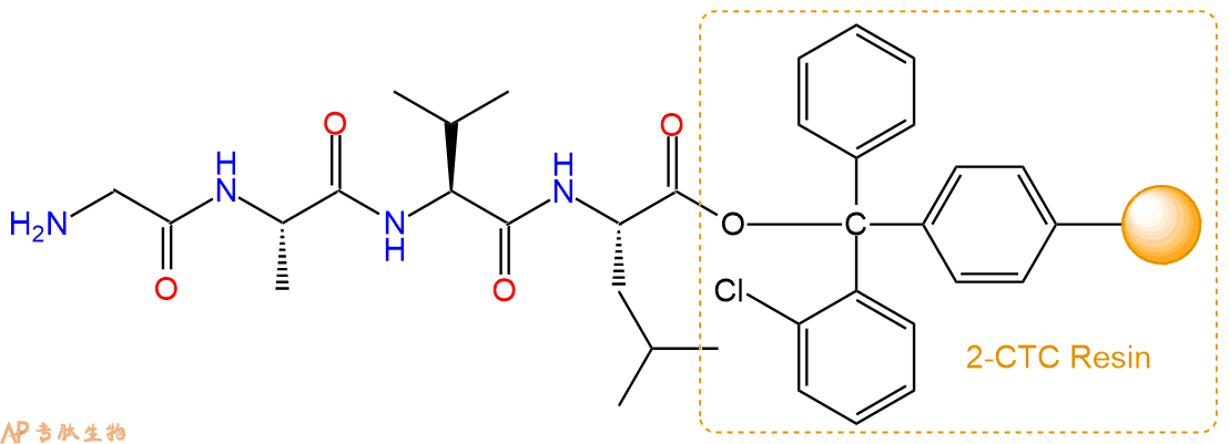 最后再经过步骤二得到 H2N-Gly-Ala-Val-Leu-CTC Resin,结构如如下: