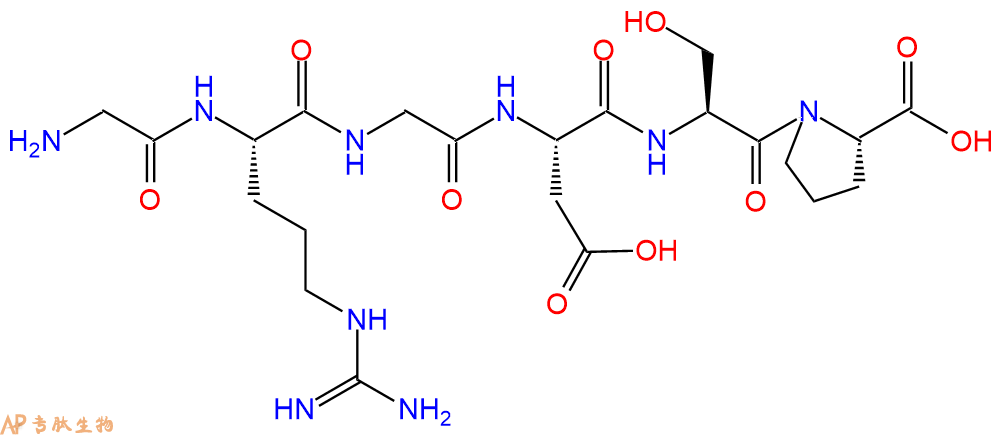 一、Gly-Arg-Gly-Asp-Ser-Pro的结构图如下