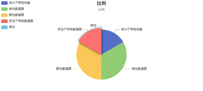 五、多肽Glu-Phe-Arg-His-Asp-Ser的亲疏水性氨基酸、极性非极性氨基酸、酸碱性氨基酸的统计(扇形图)