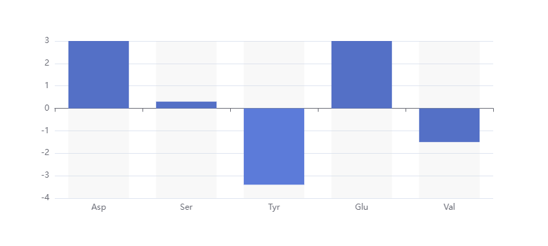 四、多肽Asp-Ser-Gly-Tyr-Glu-Val的亲疏水比例统计(条形图)