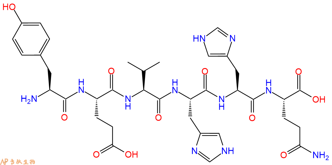三字母:H2N-Tyr-Glu-Val-His-His-Gln-COOH