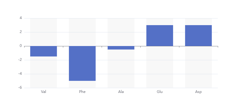 四、多肽Val-Phe-Phe-Ala-Glu-Asp的亲疏水比例统计(条形图)