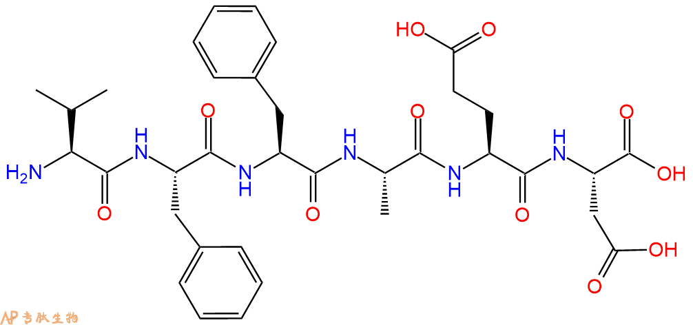 一、Val-Phe-Phe-Ala-Glu-Asp的结构图如下