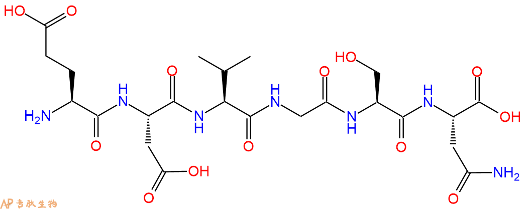 一、Glu-Asp-Val-Gly-Ser-Asn的结构图如下