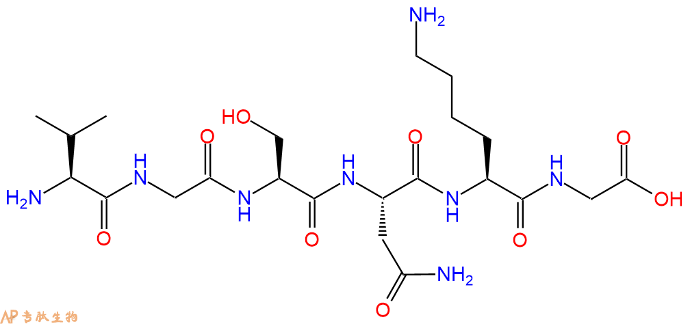 一、Val-Gly-Ser-Asn-Lys-Gly的结构图如下