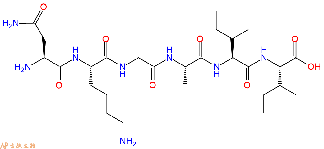 三字母:H2N-Asn-Lys-Gly-Ala-Ile-Ile-COOH