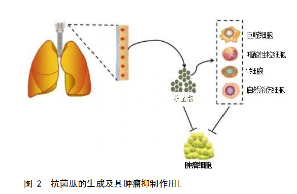 研究发现新的天然肿瘤杀伤分子促使抗肿瘤药物的更新不断发展,这其中包括抗菌肽这类具有多种性能 生物活性的分子11-21。目前的抗肿瘤治疗以手术治疗、化学治疗及放射治疗为主,这些治疗方法在延长肿瘤患者 生存时间方面仍起着至关重要的作用3-4]。肿瘤细胞是一 类快速分裂增殖的细胞,其生长过程并不受正常生长过程调控;化学治疗的主要目的是干扰这类非正常细胞的 分裂过程同。然而,很多抗肿瘤药物缺乏特异性,在其 抗肿瘤过程中对快速增殖的正常细胞亦有杀伤作用,同时容易使肿瘤细胞产生抗药性同。因此,不断开发新型 抗肿瘤药物来控制这些非正常细胞分裂是很有必要的。 其中,抗菌肽作为一种可从自然中提取并用于对抗肿瘤 细胞的潜在候选药物,引起了科学家们广泛关注。抗菌 肽是 一 类产生低抗药性并对快速增殖细胞产生毒性的宿主免疫基本成分,其主要作用基团是带正电的氨基酸 片段16-7。文章综述人类细胞源性抗菌肽的抗肿瘤相关作 用机制,阐述抗菌肽在肿瘤治疗中的应用现状。