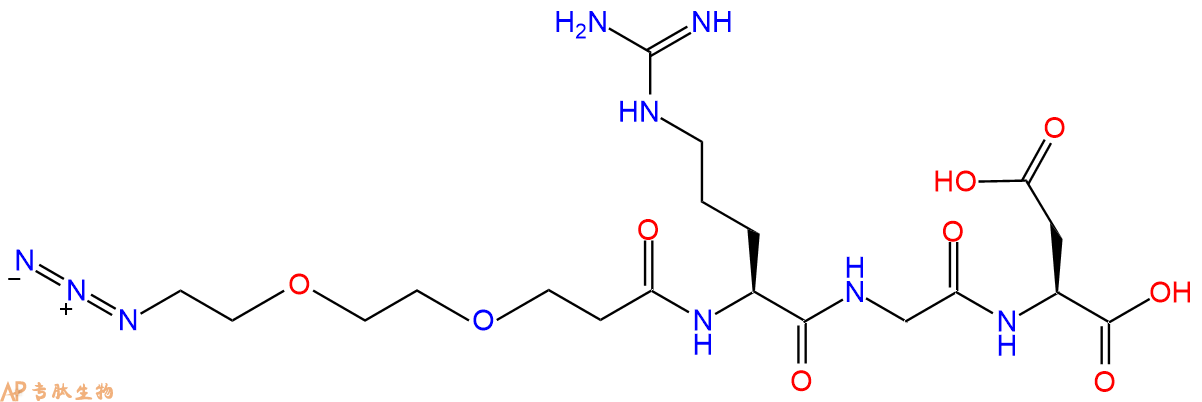 例如多RGD三肽和N3-PEG2-CH2CH2COOH结合,得到 N3-PEG2-CH2CH2CO-RGD