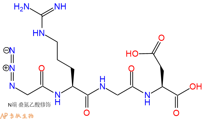 而我们常规的N端修饰叠氮基团 用的原料是叠氮乙酸,我们将 叠氮乙酸-RGD输入到多肽结构图计算器中,得到下图