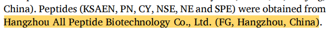 更多专肽生物的客户文献,可在文献平台中搜索关键词“Allpeptide”或“Allpeptide Biotechnology”或“专肽生物”。部分客户会将 关键词 Allpeptide 写成 All Peptide